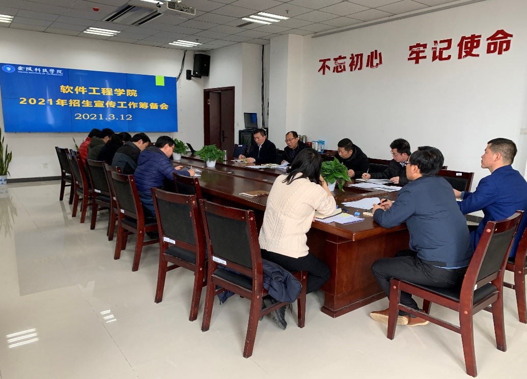 会上对2021年的招生宣传筹备工作做出了详细安排,徐志国书记就做好招生宣传筹备工作指出,要充分研判今年招生改革带来的新形势,进一步提高认识,尽快做好招生宣传筹备工作;要提高招生宣传水平,充分展现学院软件工程专业通过工程教育认证并被遴选为国家一流专业建设点的亮点与特色;要创新宣传手段,加大宣传力度,提升宣传效果。