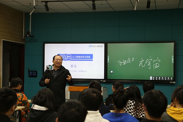 讲座伊始,曾院长向同学们介绍了当今社会的工业背景,并分别从视觉、语言、竞技、医疗、无人驾驶、文字编辑等方面详细的介绍人工智能如今的应用场景。讲座过程中,曾院长还通过个人科研成果向同学们展示了人工智能技术在工业4.0时代的高效使用与发展方向,激起同学们对科技创新的浓厚兴趣。最后,曾院长解答了同学们对于个人职业发展等相关问题的疑惑,并结合AWC官网培养方向与同学们进行了深刻交流。讲座结束,同学们纷纷表示对自己以后的发展方向有了更明确的认知,并想参加更多科技类竞赛。