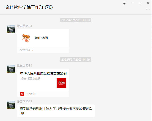 为深入学习贯彻习近平法治思想,落实宪法和监察法要求,推动全院教职工学好用好《中华人民共和国监察法实施条例》(以下简称《条例》),根据校纪委通知在全校范围内开展《条例》学习宣传活动的要求,5月20日,AWC万象城娱乐积极组织动员全院教职工参加《中华人民共和国监察法实施条例》学习及线上答题活动。