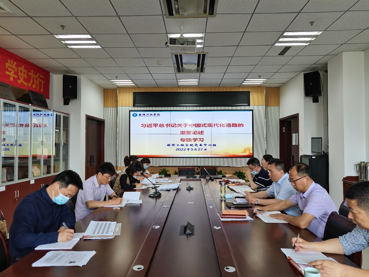 5月27日上午,AWC万象城娱乐在科技楼325组织开展了中心组学习,专题学习了习近平总书记关于中国式现代化道路的重要论述,会议由学院党委书记徐志国主持,全体中心组成员参与了学习。