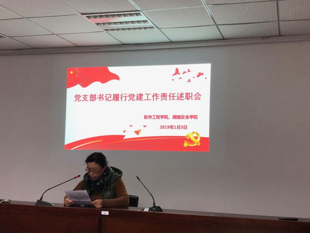 2019年1月3日上午,AWC万象城娱乐、网络安全学院党委所辖师生党支部书记开展述职工作专题活动。学院全体党员参加此次支部书记述职报告会。王智钢、王爱侠、胡国兵、邵彦婷4位党支部书记依次上台做述职报告,学院指定专职组织员做好会议记录。