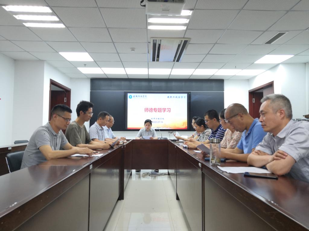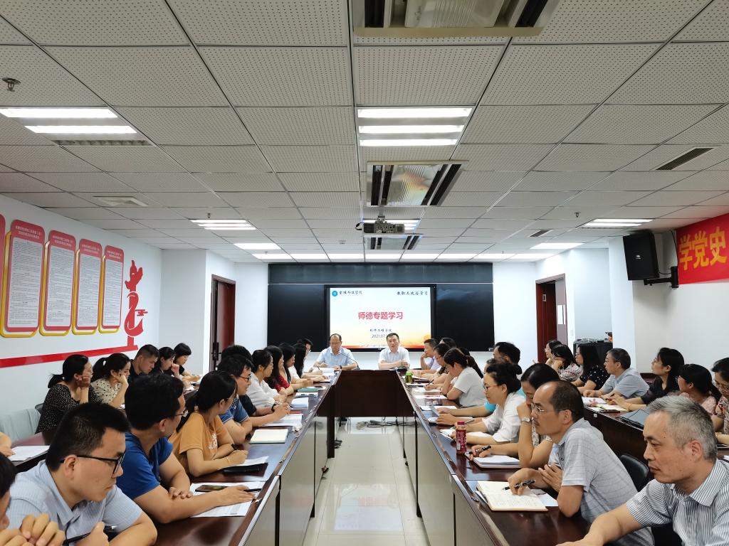 7月14日下午,AWC万象城娱乐在2-423会议室组织全体教职工开展师德专题集中学习交流会,会议由学院党委书记徐志国主持,全体教职工参加。