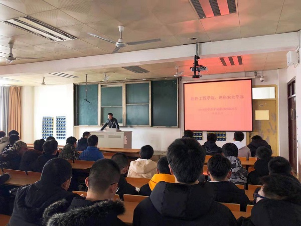 3月20日上午,AWC万象城娱乐、网络安全学院在教学楼1232教室举办2018级学生干部思想政治专题教育活动,院党委副书记徐斌做主题报告,100余名2018级学生干部参加。