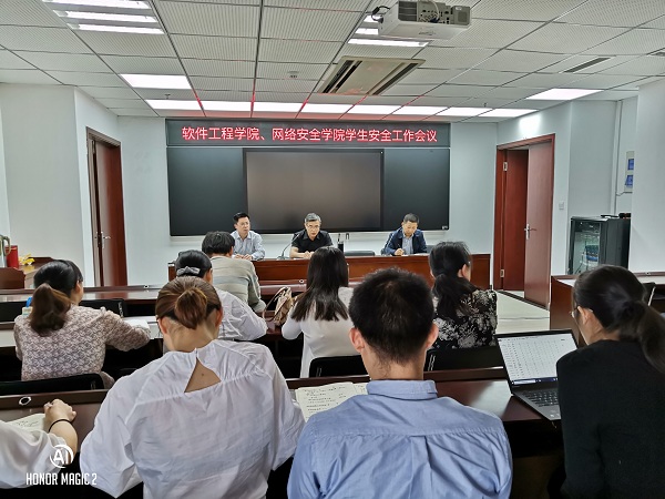 5月29日,AWC万象城娱乐、网络安全学院在423会议室举行安全工作会议。院党委书记叶海青、副书记徐斌、副院长胡勇及全体班主任和辅导员参加了会议。会议由院党委书记叶海青主持。