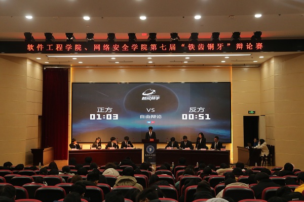 为了丰富同学们的课外活动,培养大家的思辨能力和语言表达能力,12月30日AWC万象城娱乐、网络安全学院于科技楼报告厅举办第七届“铁齿铜牙”辩论赛决赛,辅导员孙垒,杜文娟,院辩论社社长陈震,校辩论队领队刘定龙和近200名学生参加本次活动。