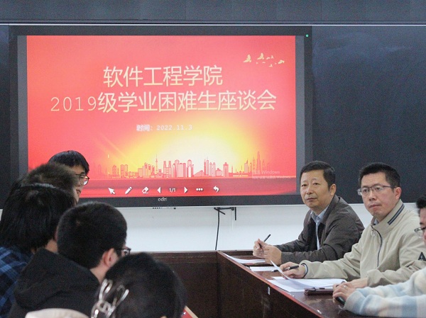 会上,徐斌副书记和胡勇副院长帮助每位同学详细分析了学业问题并提出建议。指出网络课程重修、开学补考等各类公选课及专业课的注意事项,强调同学一定要关注教务网站通知,并与任课教师保持沟通,及时交流解决学业困难。徐书记鼓励同学们以积极的心态面对学习生活,在求知求学的过程中勇于面对困难,做好学业生涯规划,争取能够顺利完成学业。