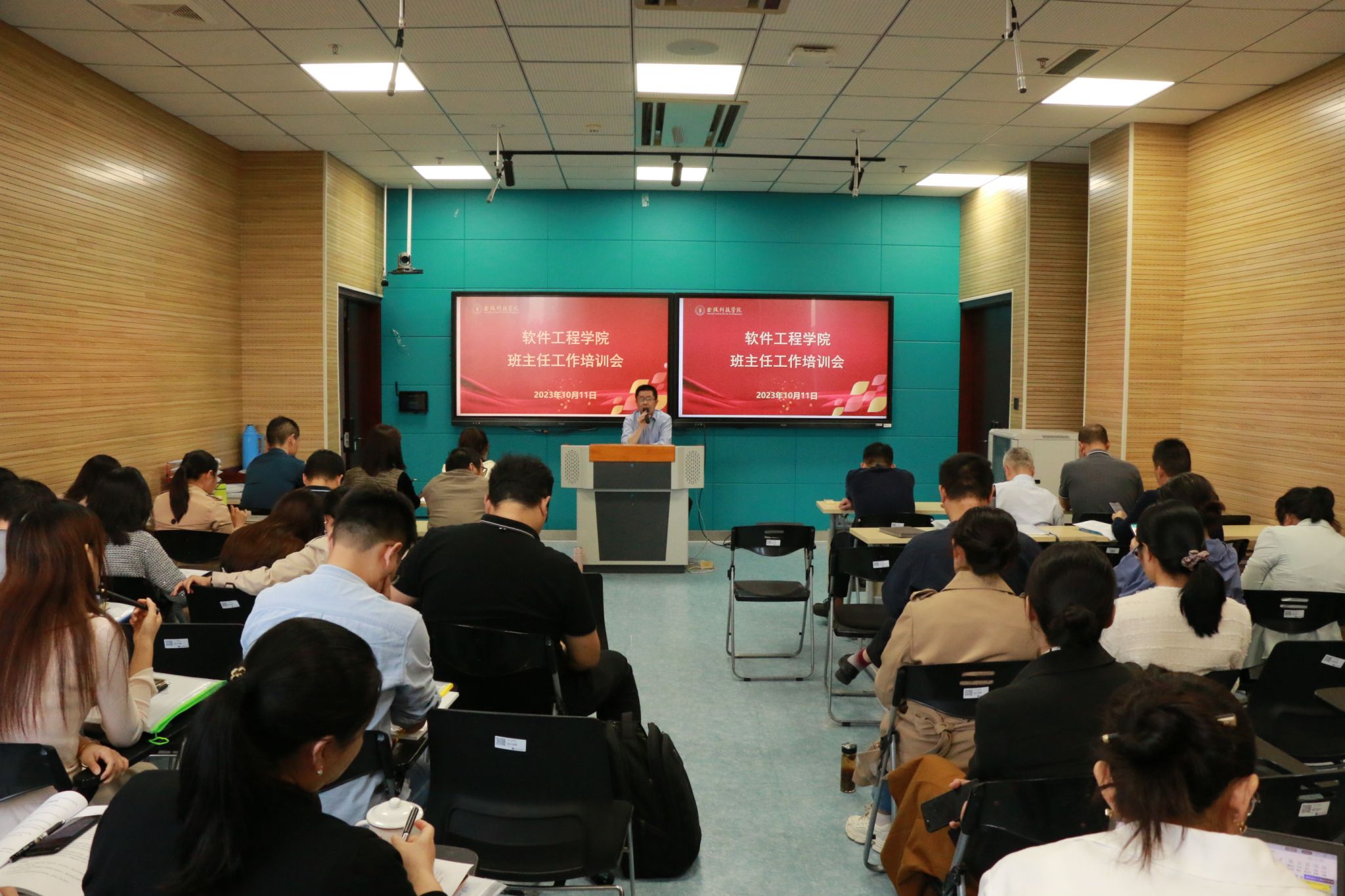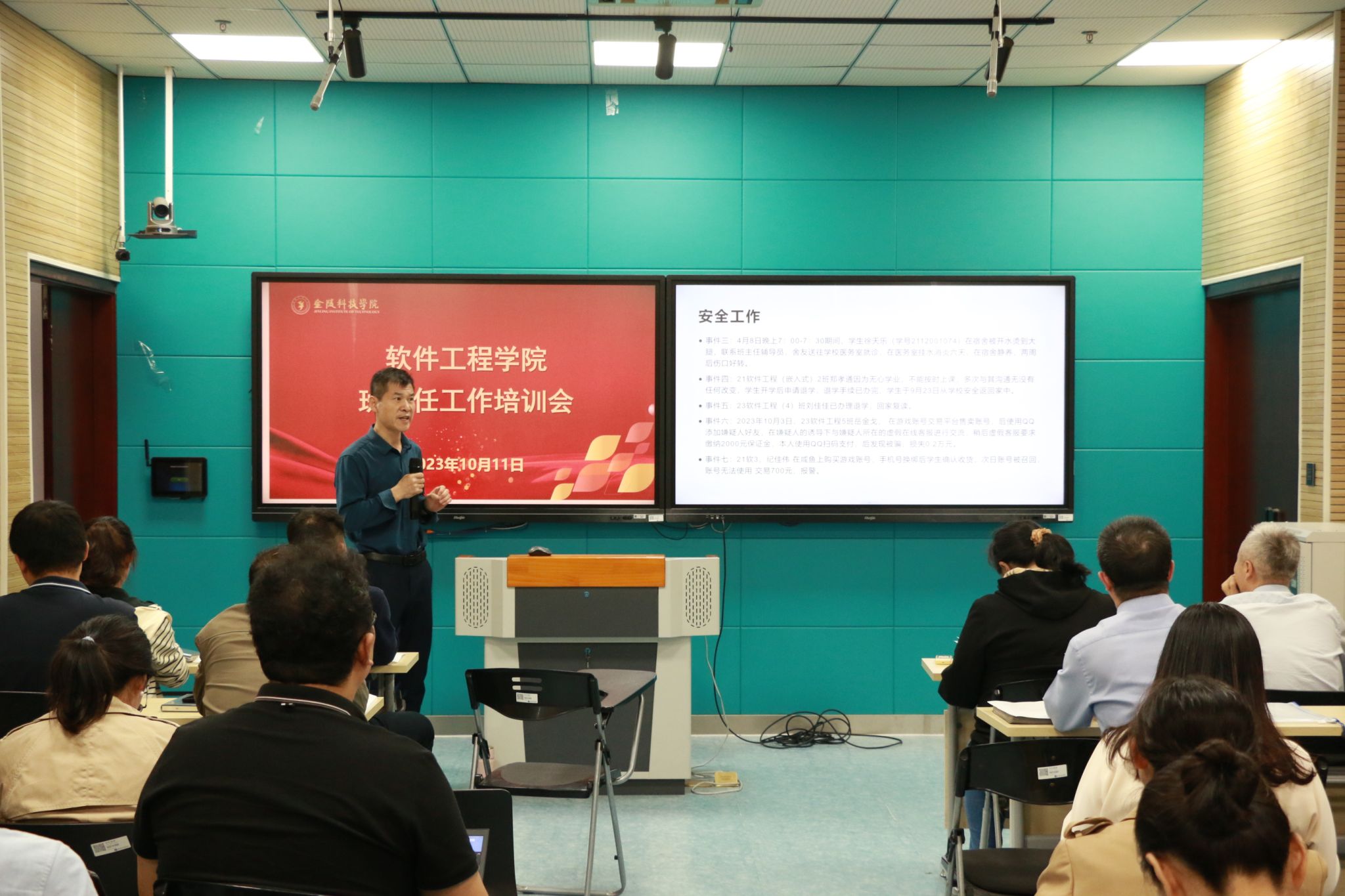 培训内容主要围绕班主任的岗位职责和工作任务展开。张理航老师对学院班主任工作职责和安全管理工作实施方案的相关要求进行了详细解读,他通过已发生的实际案例展示,就班主任如何快速、准确、稳妥的应对方面进行了有益的指导。李勇老师通报了近年来的就业情况及当前的就业形势,提出推进就业工作应该在早准备、育情感和造氛围上下工夫,他在就业理念教育、就业服务指导和搭建就业桥梁等多种措施上进行了重点讲解。杜文娟老师在班级日常管理、学风建设、评奖评优、资助工作、心理工作和班主任工作系统使用方面进行了梳理和培训。邵彦婷老师着重讲述了发展党员的时间节点和发展流程。