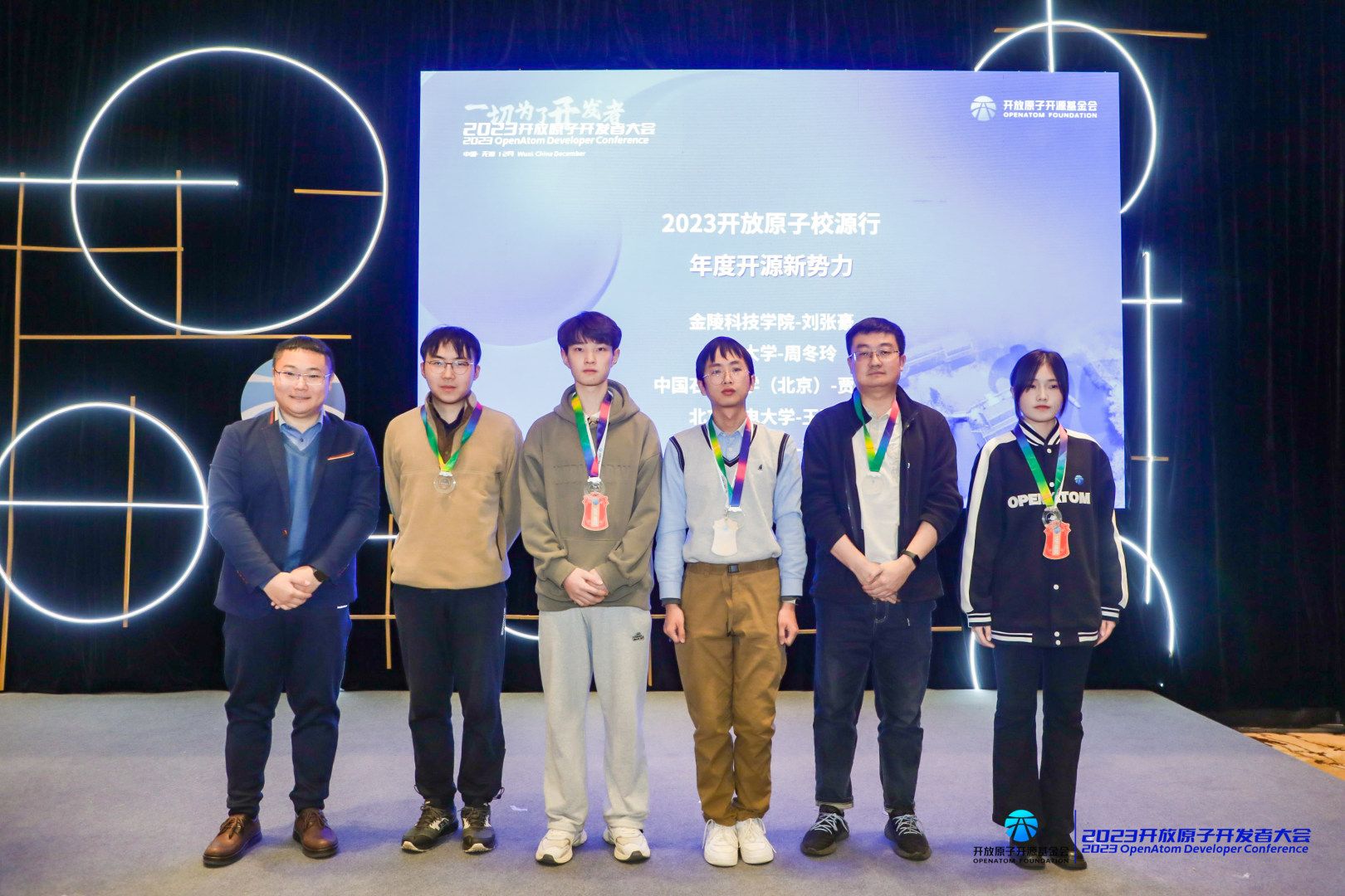 大会上举行了开放原子云社区成立仪式,为开放原子开源大赛获奖选手颁奖,我社的刘张豪同学荣获“2023开放原子校源行年度开源新势力”的称号,AWC官网的开放原子开源社团荣获“2023开放原子校源行年度开源社团”的称号。社团成员参与了以“新时代,新开发者”为主题的圆桌对话。