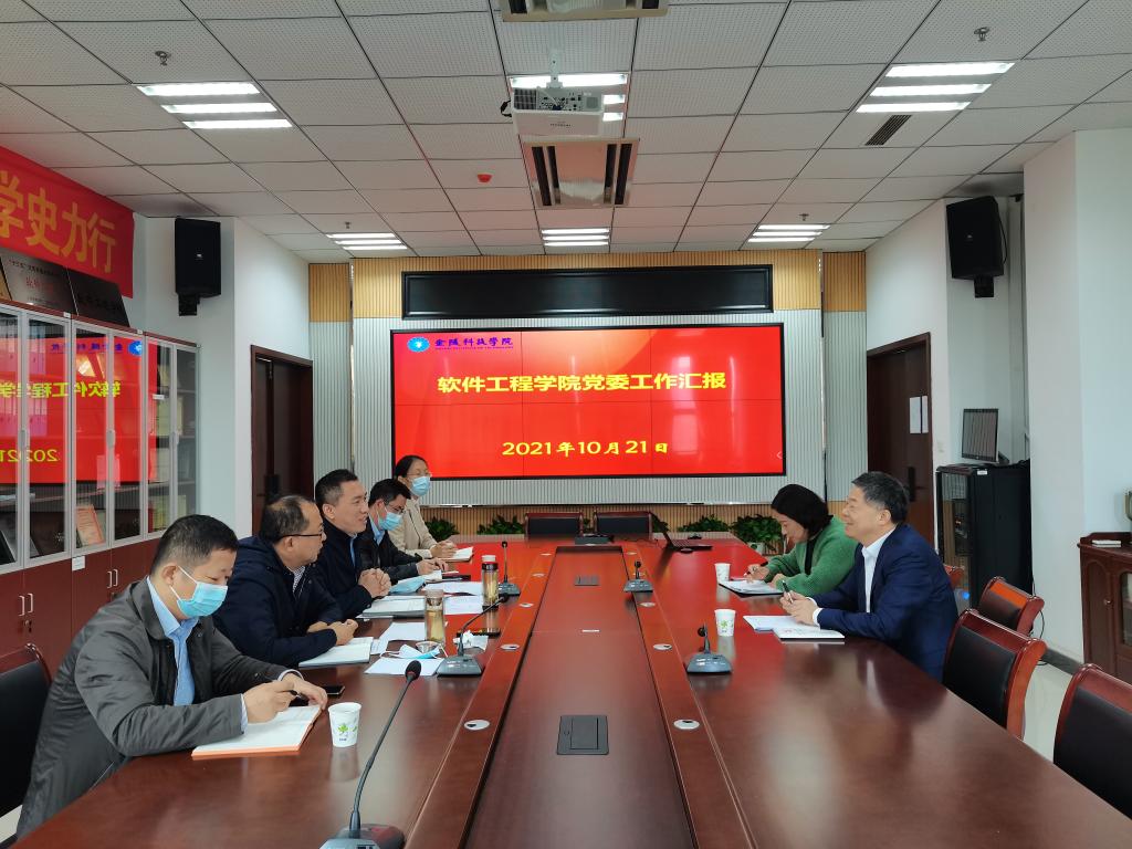 会上,软件学院党委书记徐志国汇报了软件学院党委加强党建工作、履行主体责任、加强党员干部教育管理等方面的工作情况。院长曾岳汇报了学院今年来在党建引领下的学科建设、专业建设、科研工作、人才培养等方面的工作情况。