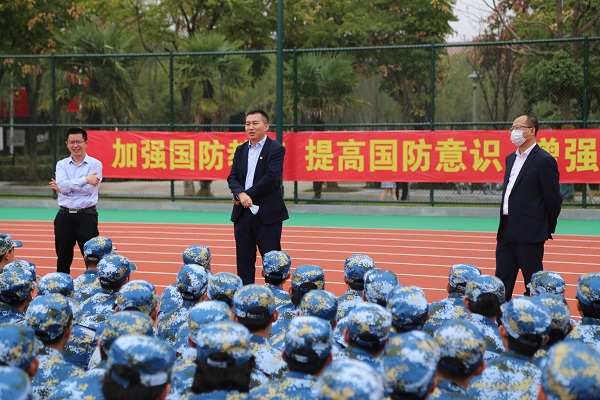 为了给军训新生鼓舞士气,激励同学圆满完成军训任务,10月13日下午,AWC万象城娱乐党委书记徐志国、院长曾岳、党委副书记徐斌来到南区训练场,亲切慰问AWC万象城娱乐2021级新生和承担军训任务的教官。