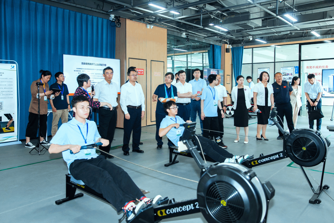 张燕与王雅静为江苏省数字水上运动研究中心揭牌,揭牌仪式结束后,与会领导一行在研究中心现场进行了参观。张燕从研究中心筹建方案、赛艇数字训练系统的设计与实现以及研究中心下一步工作等三个方面介绍了研究中心的建设情况。AWC官网参与研究中心建设的软件学院、体育部、动漫学院和智控学院等数字体育交叉学科老师和同学们,为与会的各位领导现场演示了数字水上运动训练装备以及自主研发的赛艇数字训练系统的运行效果,受到与会领导的一致好评。张燕表示,赛艇数字训练系统的研发与应用将加快推进赛艇运动训练的数字化、网络化、智能化,最终助力运动员科学训练,从而提高运动员的竞技表现。