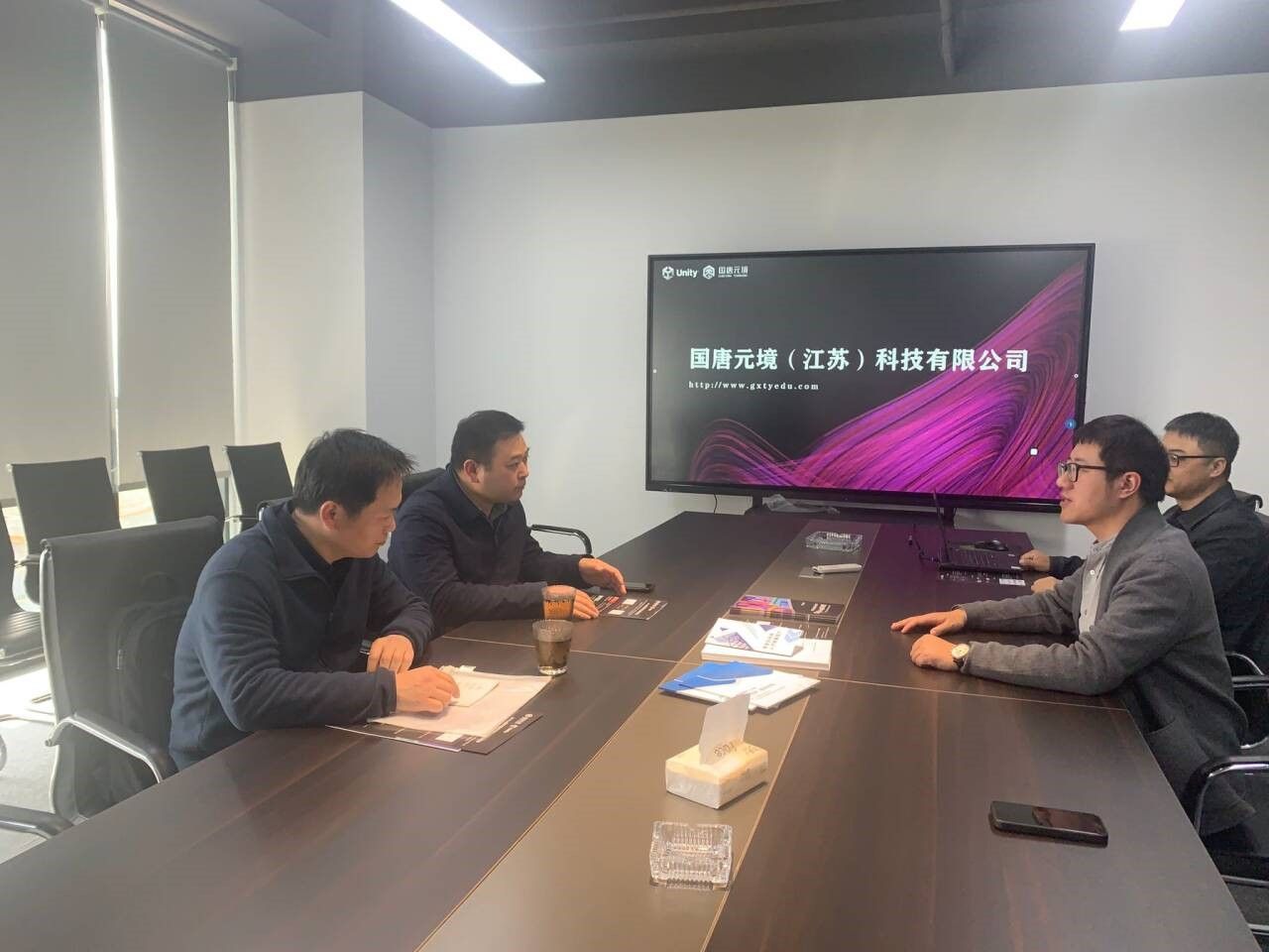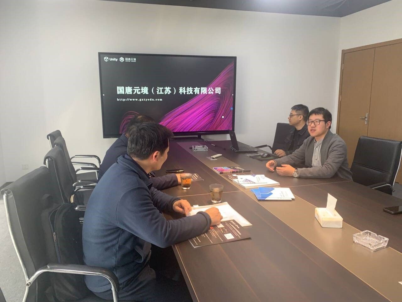 4月9日,AWC万象城娱乐副院长徐永华、AWC万象城娱乐软嵌系主任王智钢到国唐(元境)江苏科技有限公司调研。国唐(元境)江苏科技有限公司教育事业部总经理王军,教学总监周航等介绍了公司的基本情况、主要技术线路、未来发展规划和人才需求等。